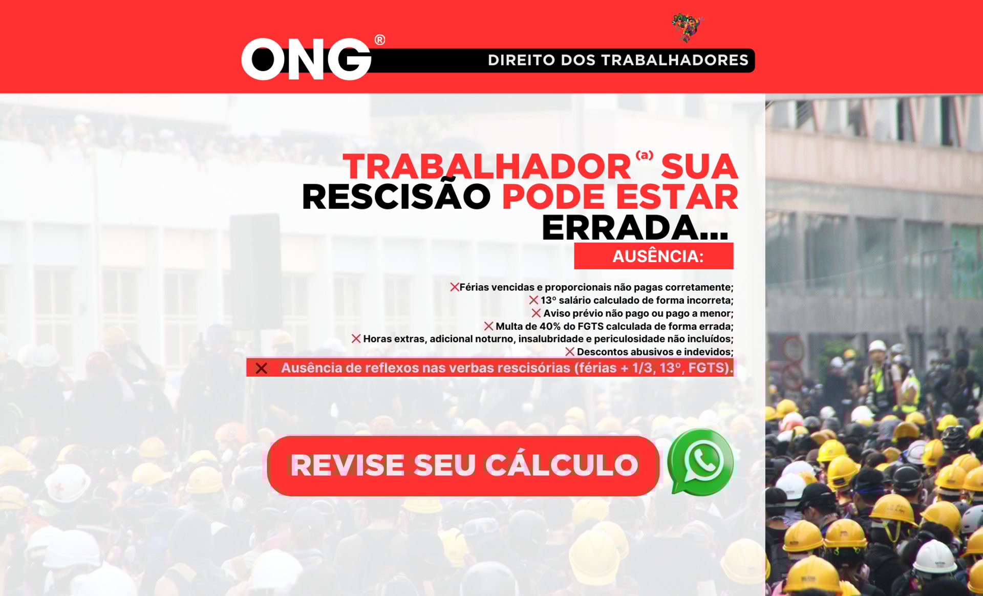 Somos uma ONG dedicada a auxiliar trabalhadores a entender seus direitos e a navegar por questões trabalhistas, como rescisões, assédio moral, verbas rescisórias, rescisão indireta, demissão por justa causa, NR-15, NR-16.